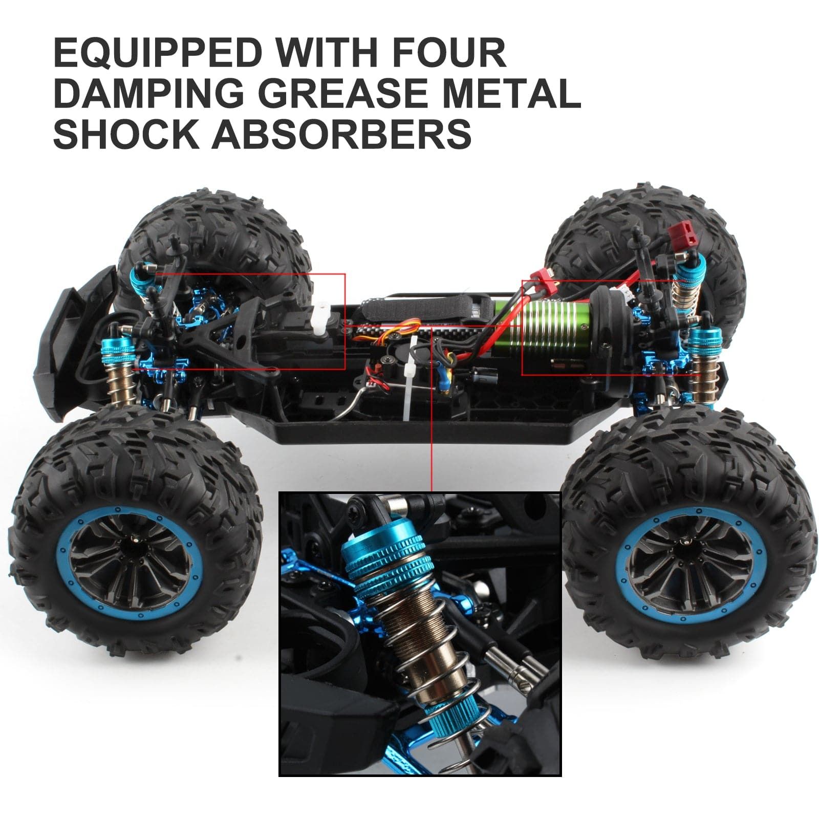 Speed means nothing without durability. This truck features alloy technology throughout, including metal transmission gears, metal dog bone swing arms, and damping alloy shock absorbers. The high-quality durable wheel frame and front/rear anti-collision plates are designed to withstand high-speed impacts and rough landings.