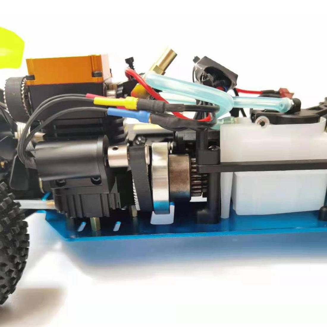 The chassis is built to match the engine's quality. It features an anodized 6061 T6 aluminum alloy base plate and shock towers, offering superior rigidity and wear resistance. The drivetrain utilizes high-quality alloy main gears and differentials, ensuring durability under power.