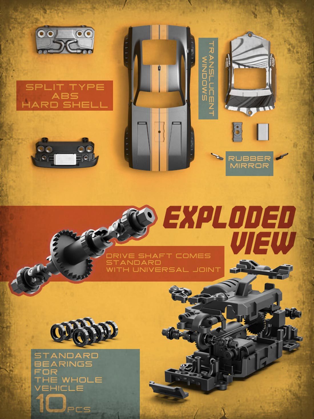 10 precision bearings and universal joint transmission shafts, the drivetrain is silky smooth and quiet. - Independent Suspension: Each wheel features independent suspension to soak up bumps and keep the tires planted.