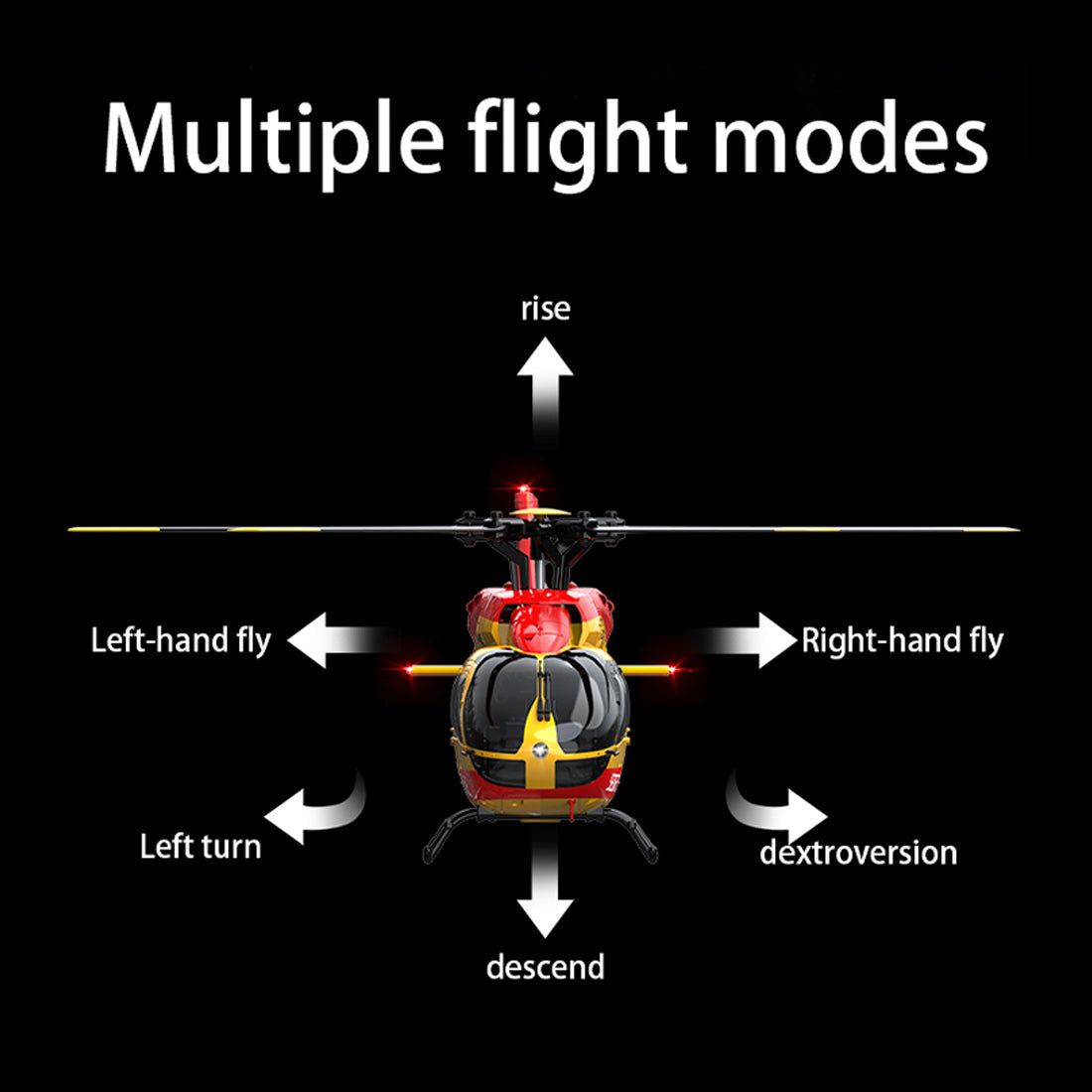 Modeled after the iconic H145, this helicopter features a detailed 1/30 scale fuselage made from durable PA/PC materials. The aerodynamic 4-blade rotor head not only looks realistic but provides strong lift and self-stability.