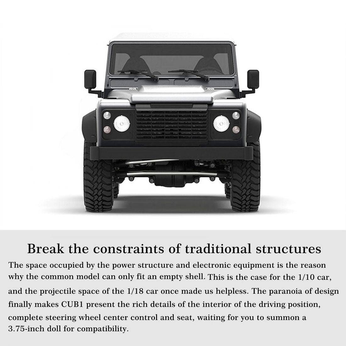 Forget plastic. The CUB 1 features a die-cast aluminum alloy body with a stunning matte gray finish, ready to display right out of the box. Every critical part of the chassis—axles, gears, fasteners, and frame components—is CNC machined. The result is a vehicle with exquisite texture, weight, and durability that feels premium in your hands.