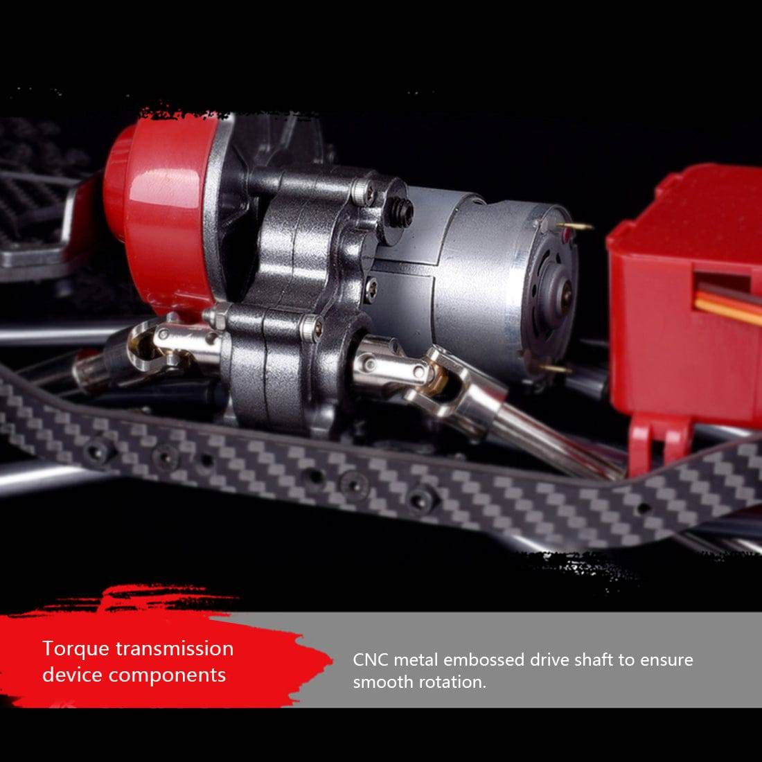 At its core lies an all-metal reduction gearbox, designed to transfer power smoothly and efficiently from the motor to the wheels. CNC-machined metal driveshafts rotate with flawless precision, delivering consistent 4WD power to help you conquer the steepest inclines and most challenging obstacles.