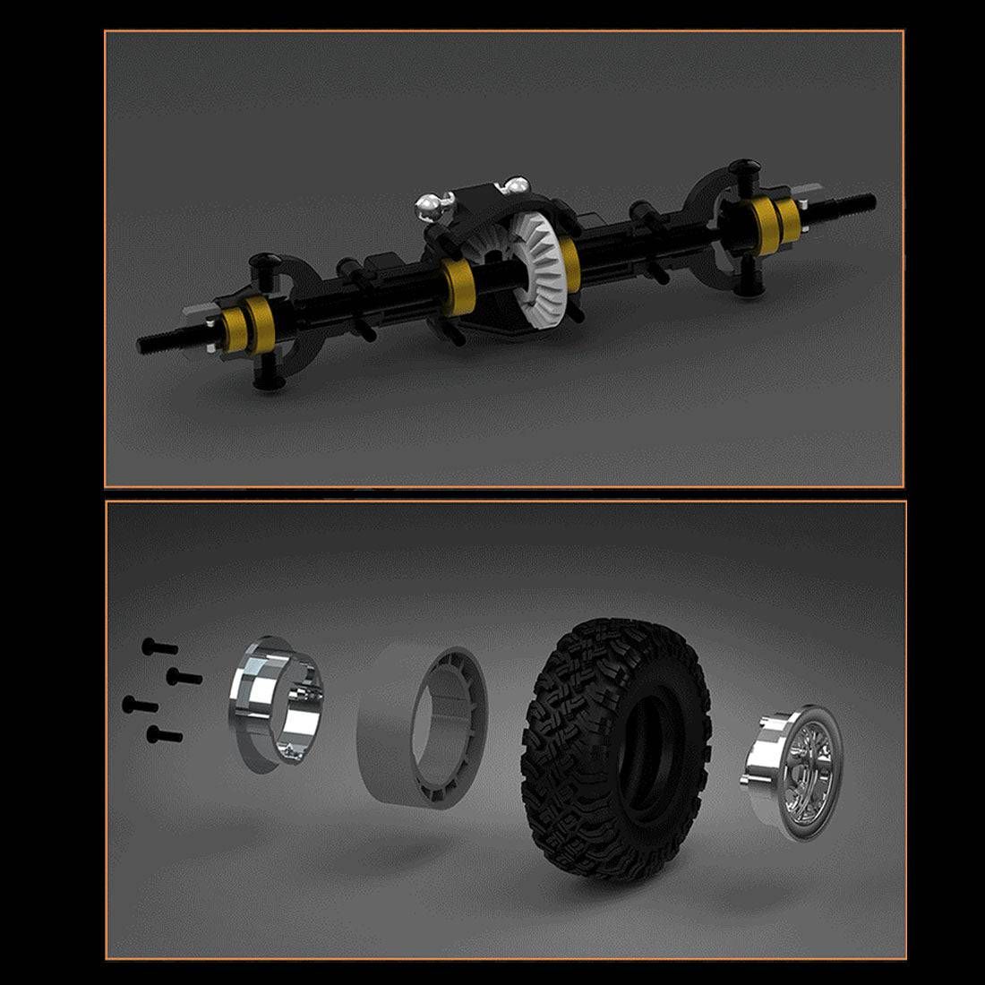 The rugged, stepped-beam frame prevents chassis twist, keeping your wheels planted during extreme articulation. The high-grip rubber tires are mounted on beadlock-style wheels, ensuring you have traction on everything from rocky trails to slick hardwood floors.