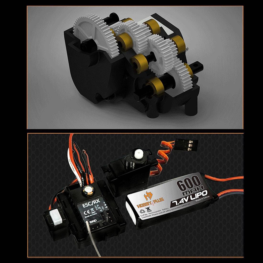 Don't let the size fool you. This truck features a robust 4WD system with newly upgraded metal cross joints and reinforced drive shafts. The axles utilize helical gear transmission, providing a perfect balance of low-speed torque for climbing and durability for higher speeds. With a reduction ratio of 104:1, it has the grunt to pull itself up steep inclines with ease.