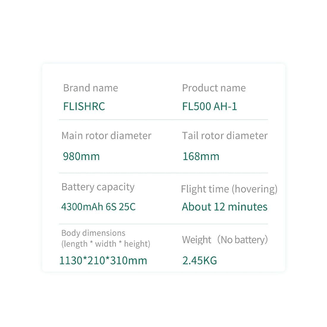 FLISHRC FL500 AH-1 Cobra 500-Class Scale RC Helicopter - GPS Stabilized 6CH RTF Attack Helicopter
