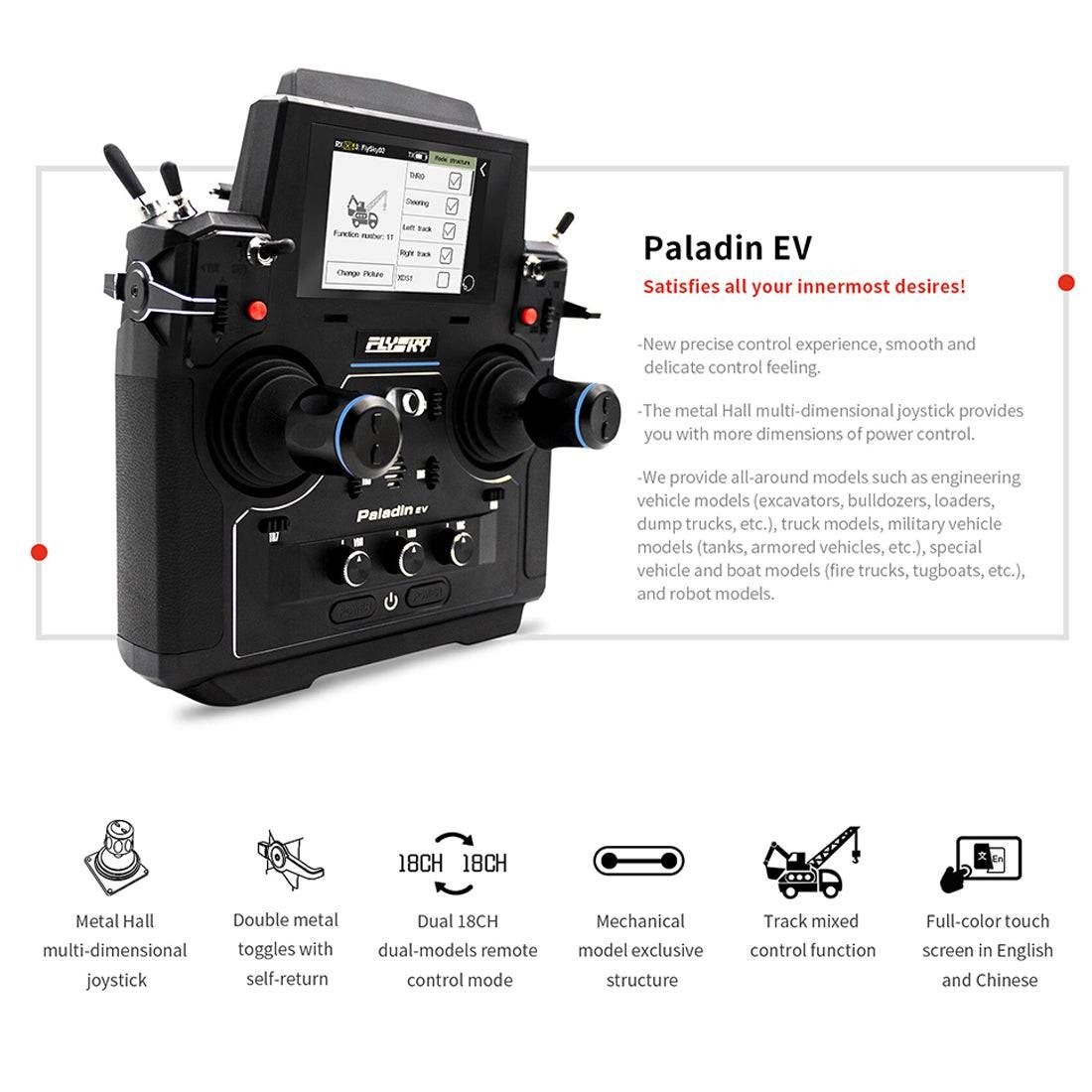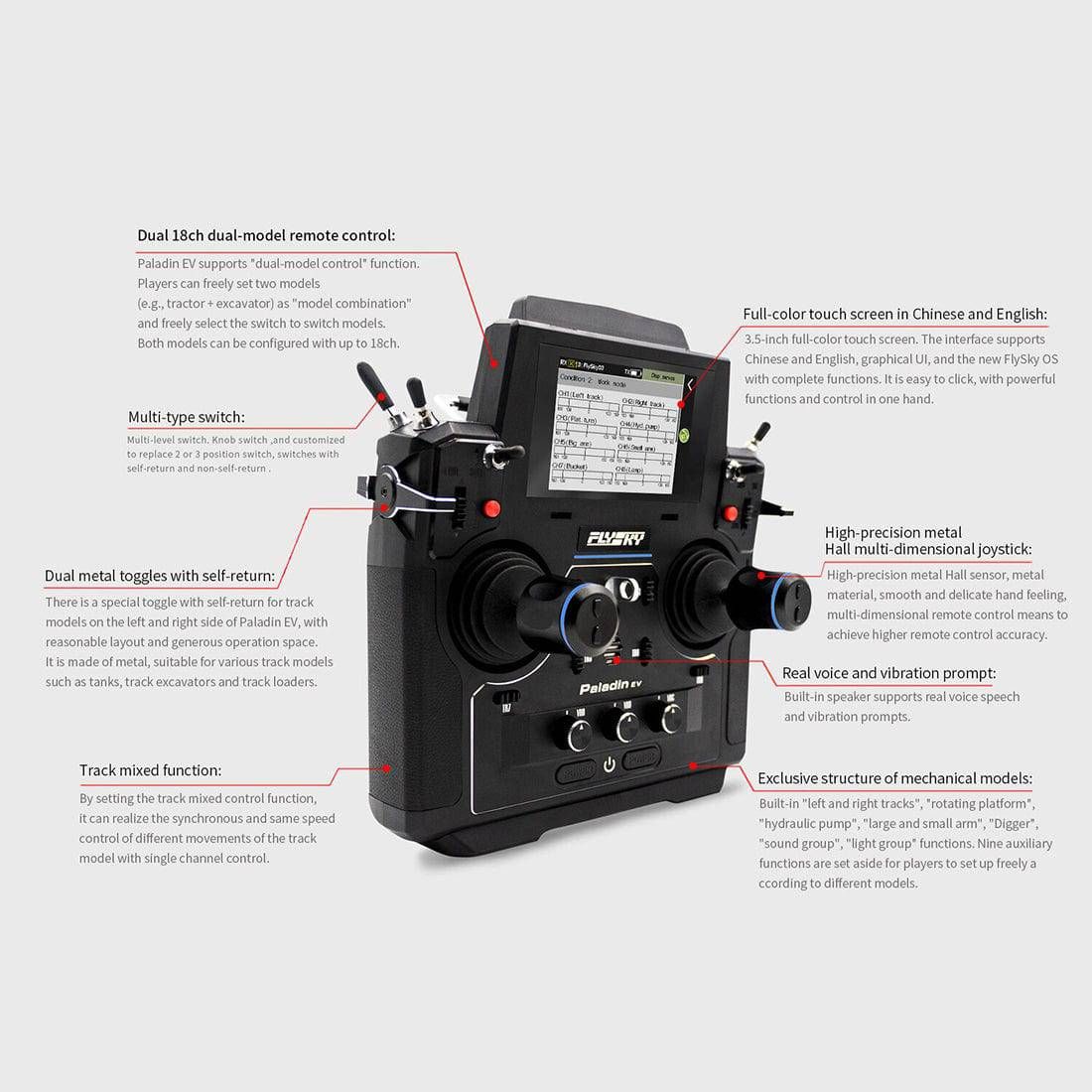 Flysky Paladin PL18 EV 18CH Transmitter with 5D Joystick for RC Construction Vehicles Excavators and Trucks RTR