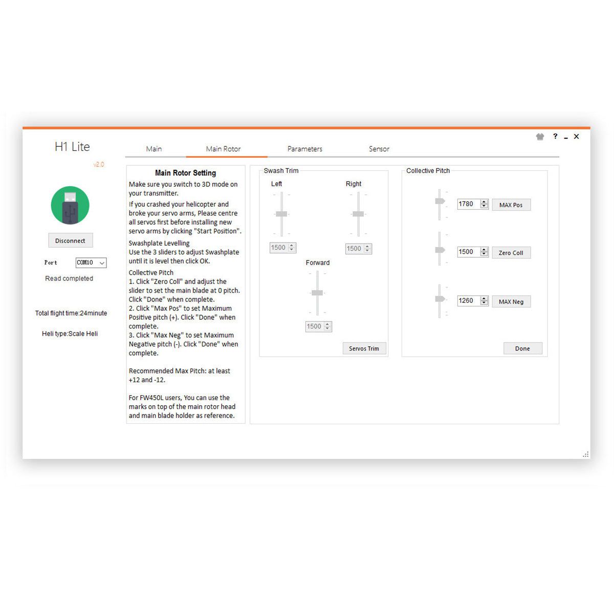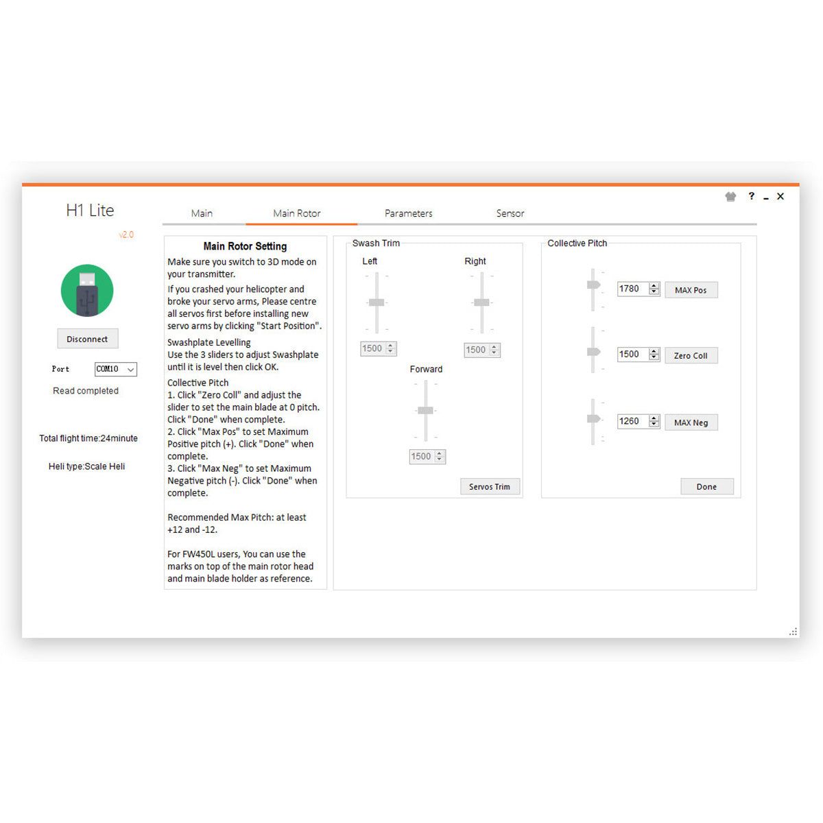 - Flight Control: H1 System with GPS/GLONASS