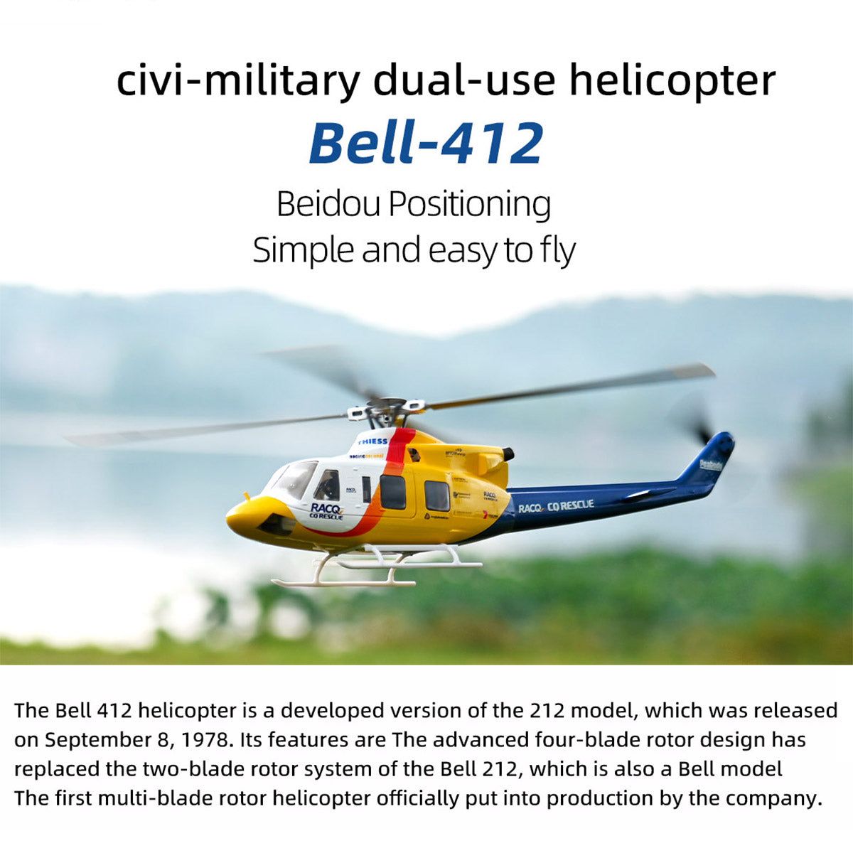- 1 x BELL-412-V4 Helicopter (Assembled)