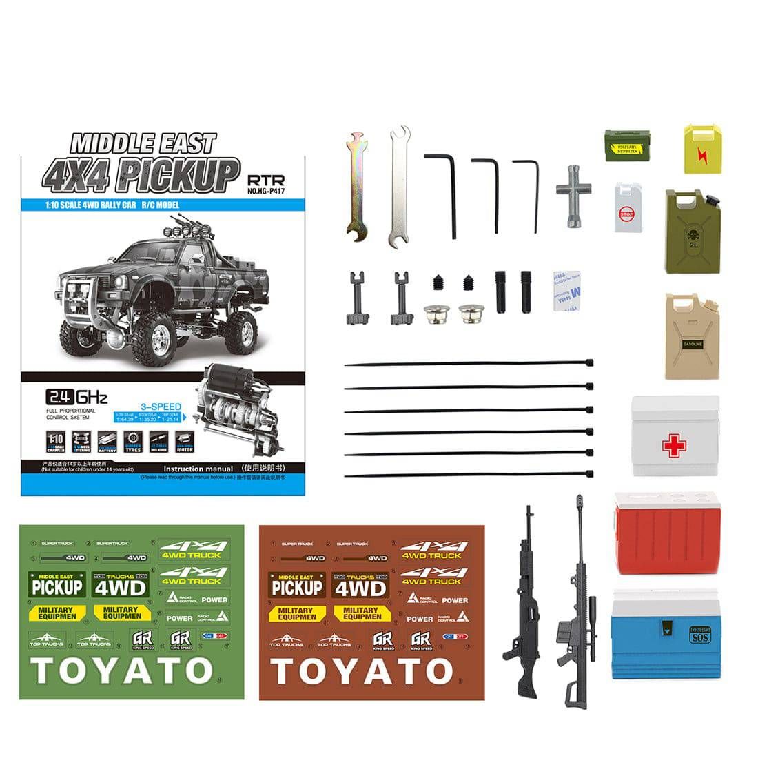 HG-P417 1/10 Scale 4WD Simulation Military Pickup Truck - 3-Speed RC Crawler with Scale Accessories RTR