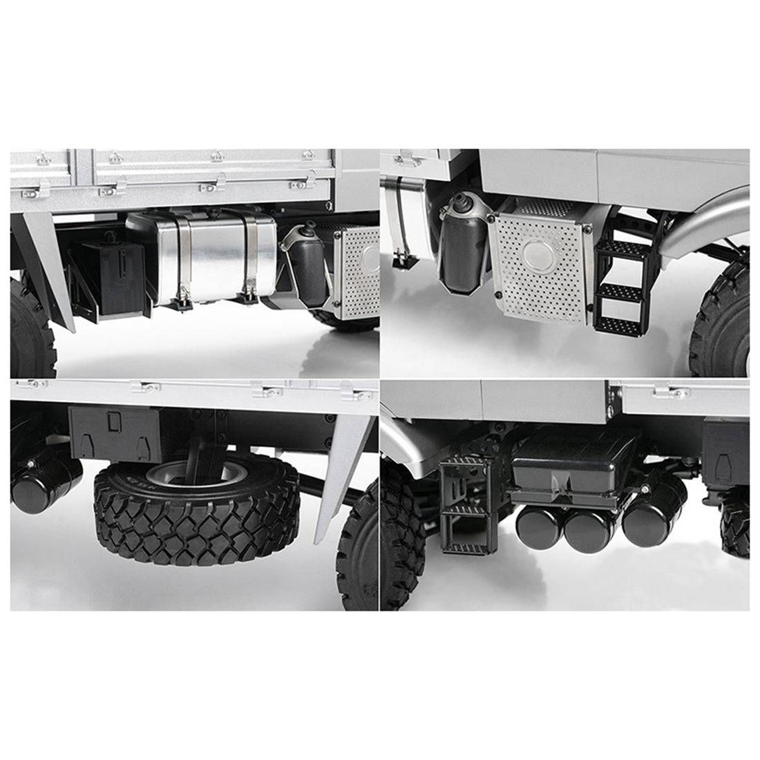 The chassis is a masterpiece of all-metal construction. From the main girders to the wheel hubs, fuel tank, and exhaust pipe, every critical component is built to withstand the rigors of heavy hauling. The cargo bed isn't just for show; it's CNC-machined from all-aluminum alloy, with three openable sides and robust strap buckles, ready for a theoretical load of up to 10KG. This truck is built with the integrity of a real-world workhorse.