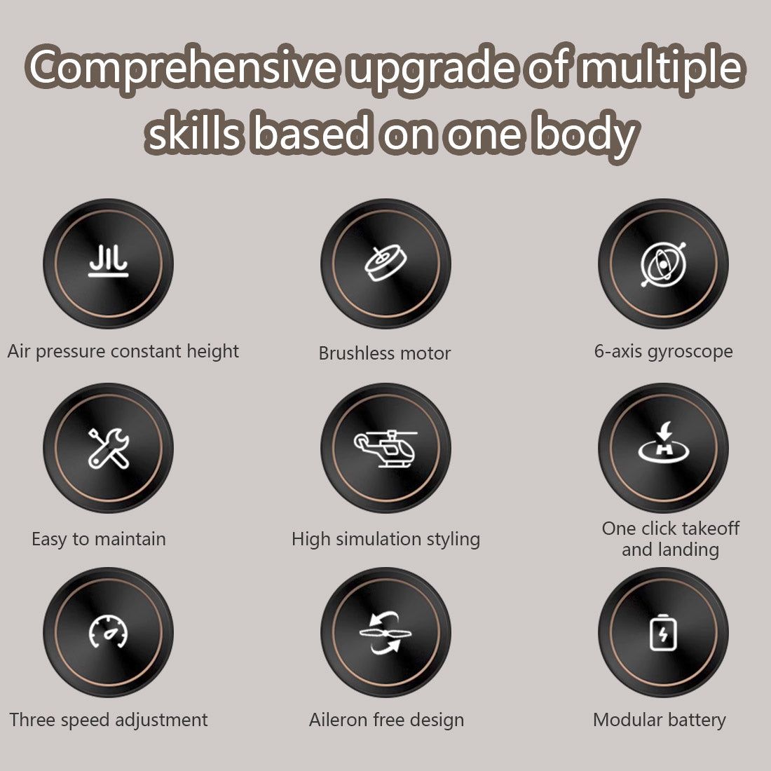 Flying made easy. The advanced flight control system integrates a 6-Axis Gyroscope, Barometric Altitude Hold, and optional Optical Flow Positioning. This technology locks the helicopter in a stable hover automatically, allowing new pilots to focus on steering and orientation.
