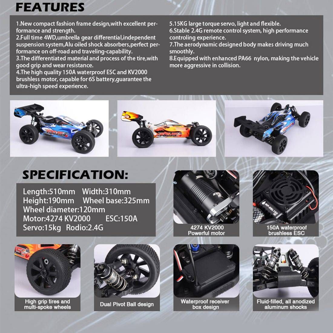 Prepare for an experience that will leave you breathless. The combination of a massive 150A waterproof ESC and a 4274 KV2000 brushless motor is engineered for one thing: extreme performance. Capable of handling a 6S LiPo battery, this buggy transforms from a fast car into a land-based rocket, delivering the kind of ultra-high-speed thrills that turn a field into a professional race track.
