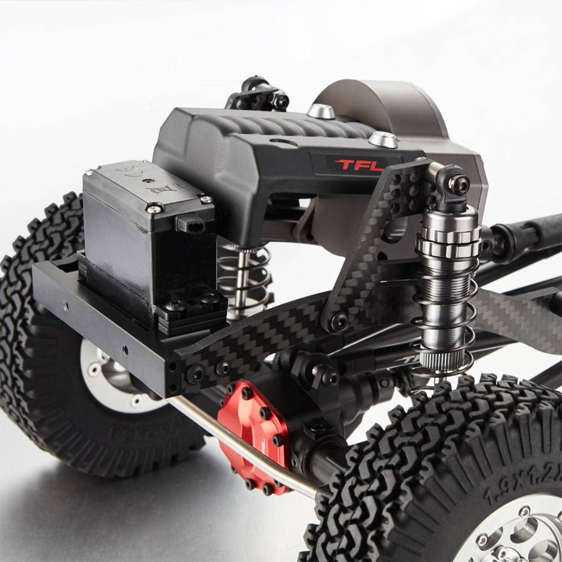 At its core is a professional-grade chassis, featuring carbon fiber frame rails and TFL's renowned second-generation all-metal axles. These CNC-machined axles aren't just for show; their offset gear design improves ground clearance and durability, giving you the strength to tackle ambitious terrain. The realistic front-mounted gearbox layout isn't just for looks—it provides authentic weight distribution for superior climbing performance.