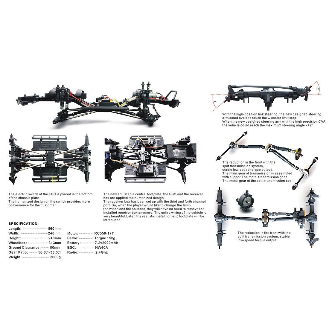 - High-Torque Power: The RC550 17T brushed motor provides the low-end grunt needed for slow, controlled crawling.