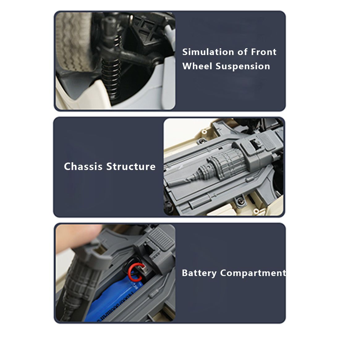 From its realistic straight-axle chassis and working spring suspension to the bright LED headlights that light up the path for night drives, the D12 is packed with details. The rubber tires offer excellent grip for climbing steep 45° inclines, while the simulated interior adds to its charm. It’s a small-scale truck with a big personality.