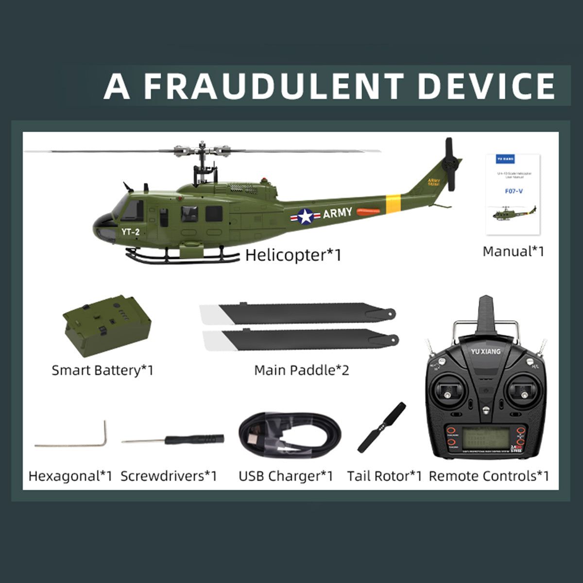 YU XIANG F07-V UH-1 Huey 1/34 Scale 6CH RC Helicopter - Dual Brushless Direct Drive 3D Stunt Aircraft RTF